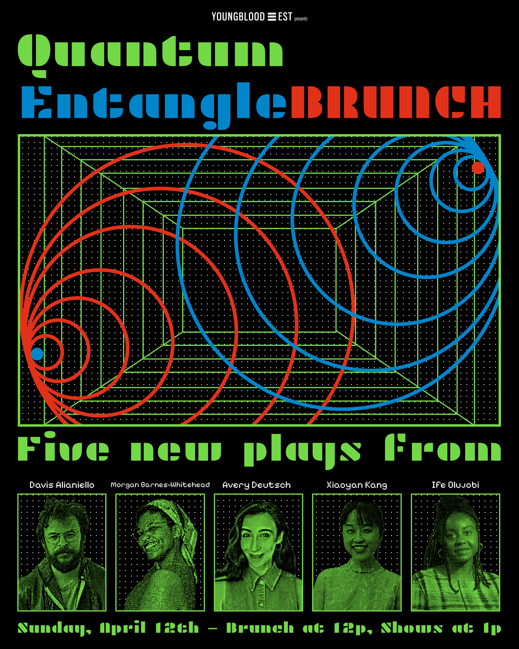Reach a unified quantum state across time and space by joining us at Quantum EntangleBRUNCH! Featuring five new science-themed plays by Davis Alianiello, Morgan Barnes-Whitehead, Avery Deutsch, Xiaoyan Kang, and Ife Olujobi.